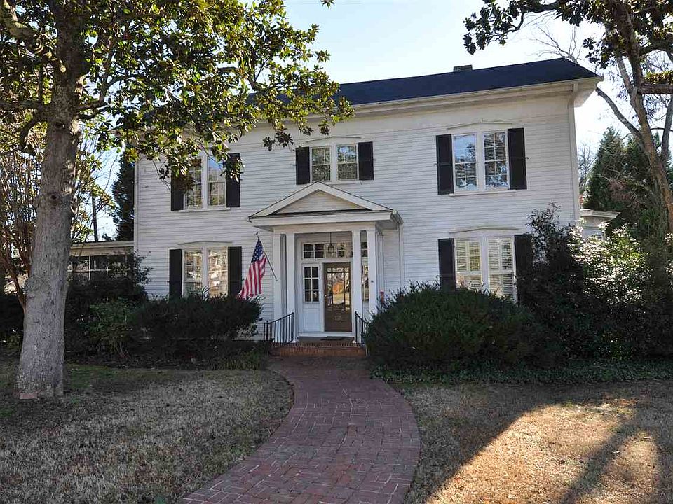 Graceful southern home built in 1890. 5BR/2BA. Master on main. Breathtaking crown molding is featured in the entrance foyer, formal living room and study. French doors open from study to a lovely screened-in porch. Bright kitchen perfect for entertaining. Large formal dining room. Gas fireplaces in LR & study. Gorgeous hardwood floors. Private patio leads to "secret garden", two-car garage. Walking distance to historic downtown. Easy commute to Charlotte and Columbia.