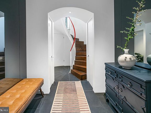 Introducing the newly renovated Trentman House in Georgetown’s East Village. This historic 4-story home preserves its original mid-century modern details while incorporating the latest conveniences and climate protection. The new chef’s kitchen is a culinary delight, equipped with Miele and Sub-Zero appliances and sleek white countertops. Bathrooms have been upgraded with elegant Spanish porcelain tiles and frameless glass enclosures, ensuring both style and comfort. Perfect for entertaining, the 2nd floor dining room flows through the living room and onto the landscaped private terrace oasis with a pond and waterfall. The 3rd and 4th floors feature three spacious en-suite bedrooms. There are two additional fully updated powder rooms on the 1st and 2nd floors. The network closet and internal wiring provide for media installations throughout the home. The garage and elevator offer an ease of living in this classic neighborhood across from Rose Park. Climate-adaptive comfort systems were added during the renovation, including new custom-built windows with energy-efficient glass, window coverings, additional insulation throughout, and new ventilation to keep the house efficiently cooler in the summer months and warmer in the winter. The home features striking design elements, including two soaring cylinders that house the winding stairs, and expansive skylights that bathe the interior in natural light. Like living in a work of art, the Trentman House is an award-winning masterpiece designed by renowned architect Hugh Newell Jacobsen. Built in 1969, this historic residence won the AIA Honor Award and was honored with Architectural Record’s #1 Award of Excellence for House Design, recognizing its significant contributions to architectural progress and quality of living. Its importance is underscored by the fact that the original architectural plans are preserved at the Library of Congress, marking it a notable landmark in modern design history. Stop by and imagine yourself sipping a beverage while the waterfall gently blocks out the world beyond the walls.