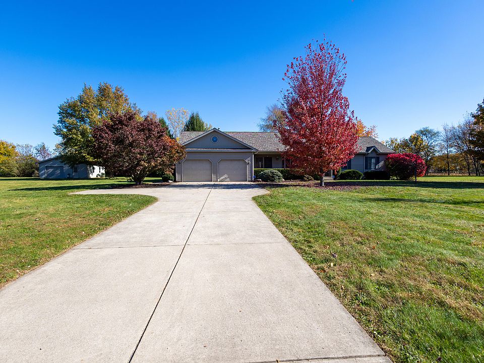This nice ranch style home sits on the Southern edge of La Porte on 1.5 acres of level ground.The 3 bedroom 2.5 bath home has a formal living,dining combo and a main floor family roo.m The 3 bedrooms are nice sized with the primary bedroom being an ensuite. The patio doors lead to the spacious deck and back yard. There is a main floor laundry area plus hookups in the basement. Aside from an attached 2 car garage there is a detached 2 car garage on the extra lot.