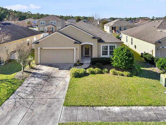This beautifully open 1 story floorplan is ready for you to move in! Starting with its beautiful curb appeal of stone & stucco and cobblestone coach lights, you will enjoy the interior features of tile in all the wet areas, silestone countertops in the kitchen and baths. Microwave, dishwasher and refrigerator included. The exterior features an extended covered lanai for those relaxing moments in your private fenced yard. Come enjoy the large Florida oaks and pines throughout the lushly landscaped common grounds of beautiful amenity rich Pine Ridge! Enjoy the lifestyle of the meandering parks and walkways, gorgeous state of the art pool with children's water features, amenity center and large playground, all here for your leisure and enjoyment!