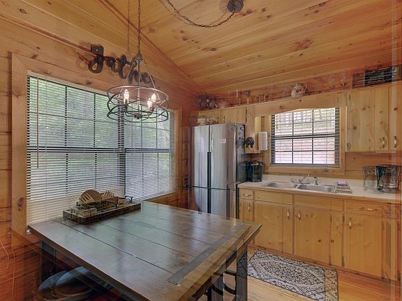 Strong rental income producing cabin. Nestled in the Cherry Log community in between Historic Blue Ridge and Ellijay Georgia with optional adjoining lot available. Enjoy sunsets from your upper deck or hot tub on the lower deck. Great outdoor entertaining space for the family gatherings. Wood burning fireplace inside and double-sided gas fireplace outside. Dont let this one slip asway.