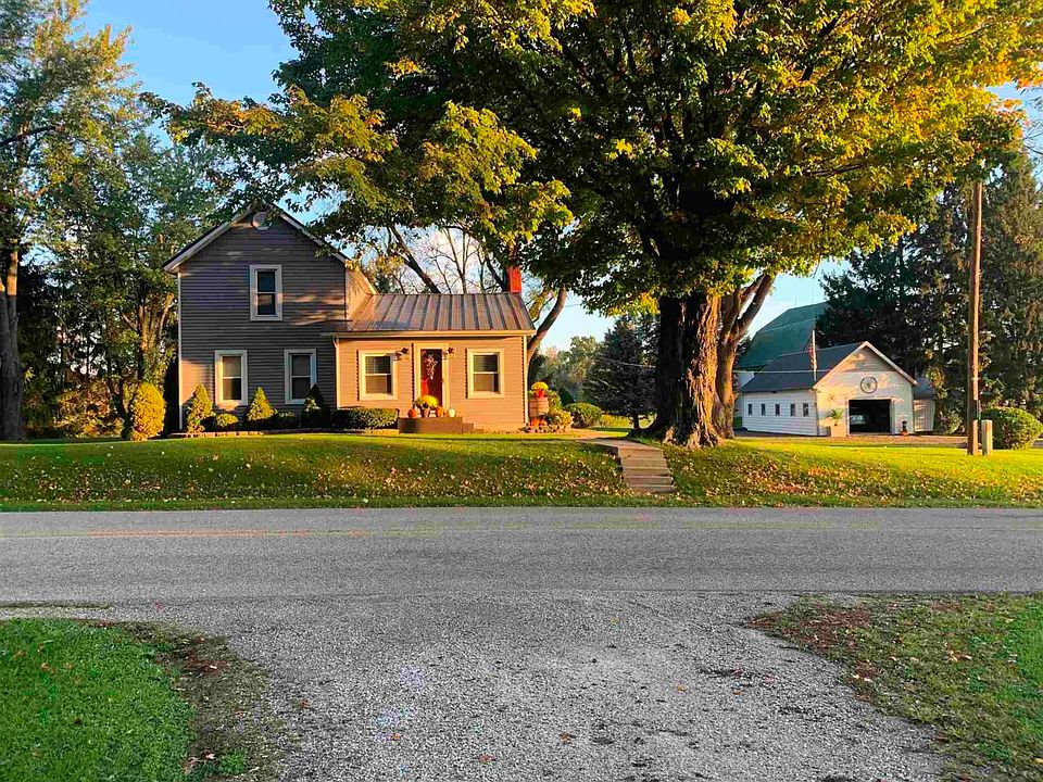 Private setting among the pine trees, this property is a true country charm. The tri level deck faces the spacious back yard with mature trees. There is a garden area with an asparagus patch. The house has been up dated in 2020 with new siding, metal roof & windows; newer kitchen with lots of cupboards; flooring & paint. The mud room was been updated with a closet & storage in the built in benches. Historic bank barn has a newer metal roof & is a great place to have a party. There is extra garage space or storage in the lower level. The garage has a work shop area. The lean to also provides garage area. Great location! Only 10 minutes from Angola, Fremont, Interstate, I69, the boat ramp on Otter Lake & the State Park.