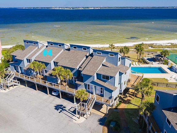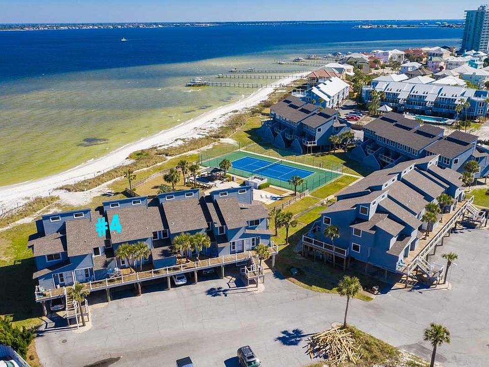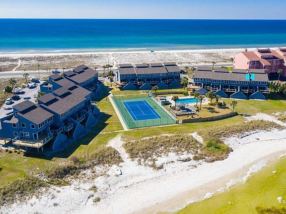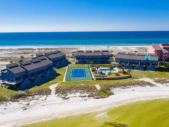 This 2 bedroom 2.5 bath unit is in a lovely low density 32-unit property. It is situated between the Gulf of Mexico and the Sound with sandy beach space to anchor small watercraft. There is an undeveloped public beach just across the street for wide open beach fun. The development offers many amenities including lush, tropical landscaping, sparkling pool, tennis court and a picnic area. The unit includes three outdoor storage closets for your beach toys, a lovely covered deck off the family room, lovely views, a whirlpool tub, and vaulted ceilings. The floors are tile and wood. Granite countertops. This is a lovely unit and a must see in your hunt for a new home, second home or vacation rental. Buyer/Agent to verify all details.