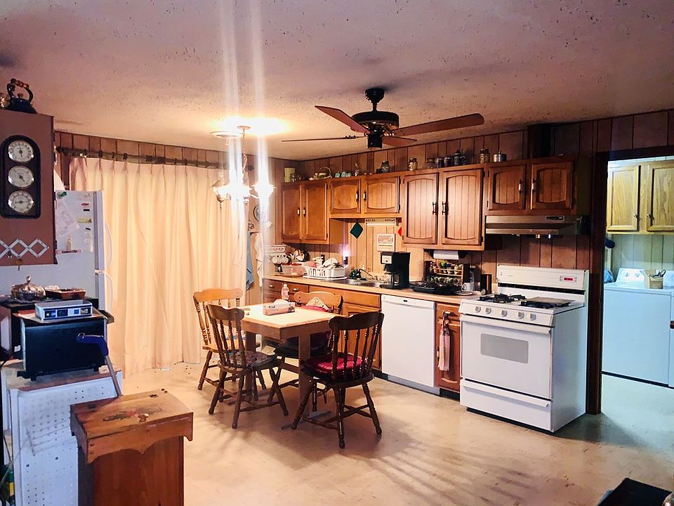 Great Garden spot! Home & Property to be sold AS IS. Metal detached 24x30 building with dirt floors, electric roll up door and separate drive. Add'l 30x26 detached garage w/ concrete floors and 2 roll up doors. Home has covered patio on rear and small utility shed to stay. Possible 3rd bedroom on 2nd level but does not have a closet. Wall gas propane heater, CHA is propane and also has a wood stove for heat.
