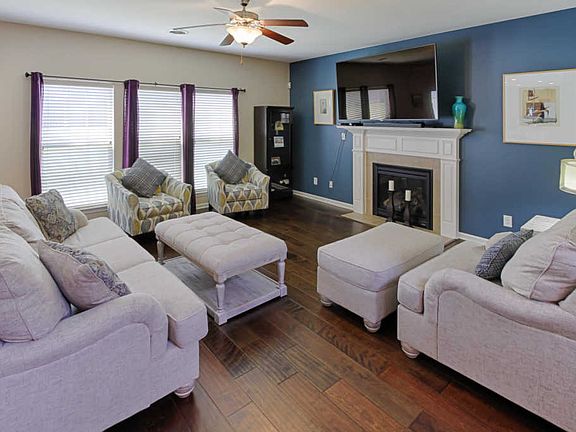 Charming 4 bedroom 2.5 bath home in an idyllic family-friendly community. Take in early morning sunrises from this cozy front porch. Be welcomed with gleaming hardwood floors and a two-story foyer. Fresh paint compliments the open-living floor plan. Kitchen boasts granite countertops, a large breakfast bar and stainless appliances. Step out the french doors to a serene level lot and patio. The upper level hosts three bedrooms and a large bonus room, the perfect setting for a playroom, game room or theater. The master suite features a trey ceiling, large bathroom and walk-in closet. More details by request.