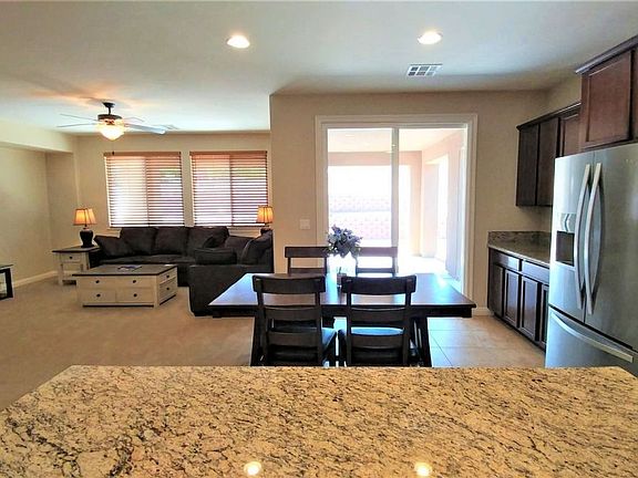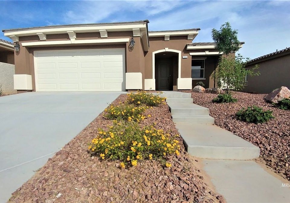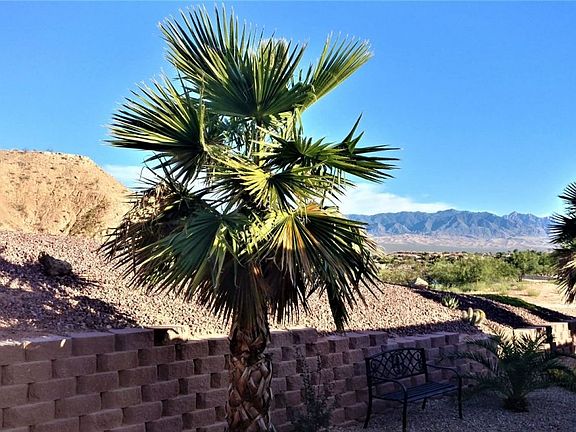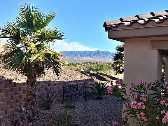This is a beautiful 1502 Sq. Ft. located on the 6th hole of the Canyons Golf Course. SIDs, $7,402, are Paid-In-Full. This almost new home has a spacious open floor plan with 2 Bedrooms plus Den/Office and 2 Bathrooms. The home has 18" tile, raised panel and staggered kitchen cabinets, stainless steel appliances, granite countertops, large kitchen island, 9 ft. ceilings, 8' exterior doors, large windows, 2 tone interior paint, front yard and backyard is landscaped, oversized extended covered patio with golf course and Mountain View's. Located in a perfect location to enjoy every minute of what Mesquite has to offer! A must see dream home.