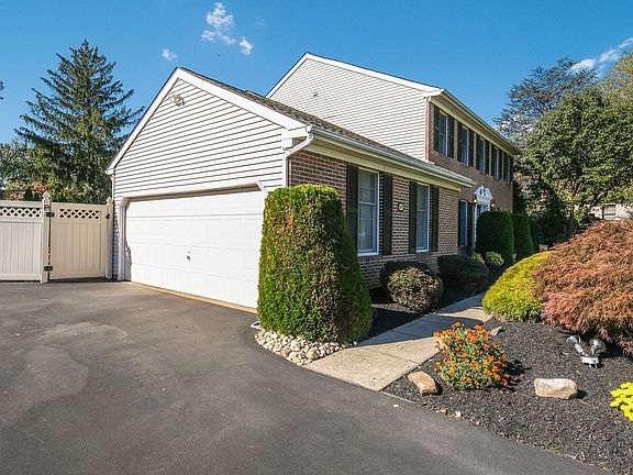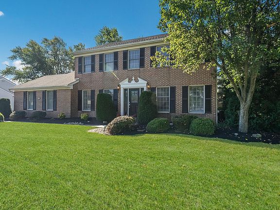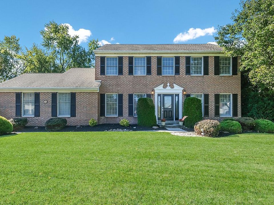 Absolutely gorgeous 4 BR, 2.5 BA full brick front Colonial in Buttonwood Farms! Formal entry offers custom leaded glass front door with matching sidelights & hardwood floors. Formal Living room with plush wall-to-wall carpet & two large windows welcoming in the sunshine. Formal Dining room with hardwood floors, chair rail, picture & crown molding. Beautiful Eat-in island Kitchen with granite countertops, custom tiled backsplash, stainless steel appliances including gas range with overhead microwave & built-in dishwasher, large island /breakfast bar with custom pendant lighting that seats 3 & bright & open Breakfast room that offers vaulted ceiling with skylights & ceiling fan, additional built-in cabinetry & triple French door leading to covered rear deck. Family room with click lock flooring, ceiling fan & gas fireplace. The First floor also offers a Powder room & Laundry room with a door leading to the outside. The second level offers Master Bedroom with sitting room, walk-in closet & full bath with corner platform jacuzzi tub, separate seamless glass walk in shower with custom porcelain tile & double vanity. Three additional large bedrooms & full hall bath with tub/shower combo & updated vanity on 2nd level. Full, finished Basement with new wall-to-wall carpet, recessed lighting, & custom built-in shelving. The rear yard is fully fenced & offers a large, partially covered deck overlooking a free-form gunite in-ground pool. 2 car attached side entry Garage. Don't miss this one!
