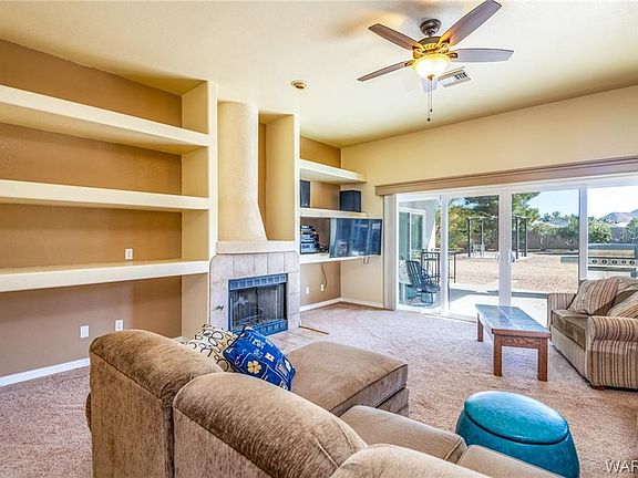 Gorgeous 2028 sq ft, 4 bedroom home in the desirable Rancho Santa Fe subdivision** Large lot with almost a half acre** Landscaped in the front and rear yard with mature trees & shrubs, decorative colored rock, automatic watering system, deep driveway(for plenty of front parking) and concrete walkway to the arched formal entry** Amazing front and rear yard mountain views* Upgraded, stainless steel custom French style security screen entry door* Walking in to this beautiful home you will find a beautiful office to the left with large view windows for natural lighting* to the right you can enjoy the formal dining room with high ceilings , arched entry, quality lighting and view window* large great room with open floorplan, tiled gas log fireplace, built-in entertainment shelving, high ceilings, upgraded carpet, new 4 panel dual pane sliding glass doors, and quality lighting throughout* the dining nook area off the kitchen has large view windows too* Kitchen features a Corian countertops with backsplash, all appliances included (gas stove/oven, dishwasher, microwave and refrigerator), breakfast bar & pantry* King-size owners suite on the south side of the home with potshelves, wood laminate flooring, large new dual pane sliding glass door to patio* Owners suite bathroom features dual sinks, mirrored closet doors, deep walk-in closet with built in shelves, privacy windows, walk-in tiled shower and separate soak tub* Split bedrooms* 3 bedrooms on north side of the home* one of the bedrooms has a new dual pane sliding glass door to the covered patio* large guest bathroom*Indoor laundry room with built in cabinets and utility sink* large 2 car garage* RV gates* plenty of RV parking & room for all the toys* Large covered patio* Rear yard has pine trees decorative crushed rock, firepit, storage building & separate dog run* Also an entertainment area with concrete pad * The 4th bedroom has a little spackle patching a few small homes but has recently been painted*