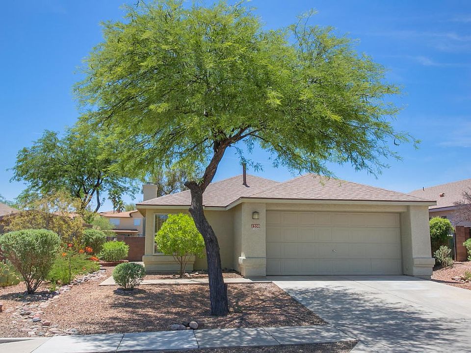 OPEN SUNDAY 6/10 FROM 2-4!! Don't miss this move in ready 2 bedroom, 2 bath home with den/ optional 3rd bedroom. All of the flooring throughout has been replaced and is BRAND NEW. This home backs to a private lot and features beautiful drop-off mountain views from the street and backyard. Spacious wrap-around yard offers plenty of room to roam, and has beautiful low-care landscape on drip. Oversized master bedroom has spacious closet and dual sinks in bath as well as large soaking tub. Kitchen opens to spacious great room for easy entertaining. Guest bedroom sits at end of hallway, far from master for privacy. Spacious 2 car garage offers plenty of storage. Close to U of A, Pima West, and downtown. A/C was just serviced, new water heater, and roof only 3 yrs old. This will go quick!