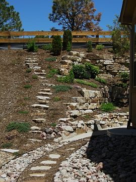 Immaculate 4 bed, 3 bath stucco rancher w/ private back yard backing to acreage in flying horse w/ no rear neighbors! 1-level living plus 80% fin basement, stucco exterior, xeriscaped backyard w/ patio & extensive stone terracing! Vaulted hardwood entry. Beautiful open living room w/ vaulted ceiling, wall of windows, new hardwood flooring, built ins & gas log fireplace. Eat-in kitchen w/ hardwood flooring, raised panel hickory cabinets w/ pull-outs & crown molding, center island w/ breakfast bar, Corian counters, canned lighting & bayed eating nook. Formal dining w/ coffered ceiling, & arched entry. Master bed w/ double door entry, walk in closet & 5 piece master bath w/ soak tub, seat in shower & Corian counters. Office or den w/ double door entry, plantation shutters & closet. 2nd bed w/ full bath w/ Corian counter & laundry w/ sink. Basement: Large family room. Rec room. 2 add beds. Full bath. Storage. A/C. Humidifier. Vinyl windows. Custom window coverings, plantation shutters & double cell insulated blinds. New hardwood in entry, kitchen, nook & hallway. Stained wood doors & trim. Updated lighting. Vaulted ceilings & rounded corners. Acrylic block stair accents. Newer roof & gutters. Stucco exterior. 3-car garage. South facing driveway. Professionally landscaped yard. Stone terracing & accents. Great neighborhood w/ 22 acres of open space w/ 3 ponds, amphitheatre & 12 acre park w/ playground, tennis courts, pavilion, lake & walking trails. D 20 schools.