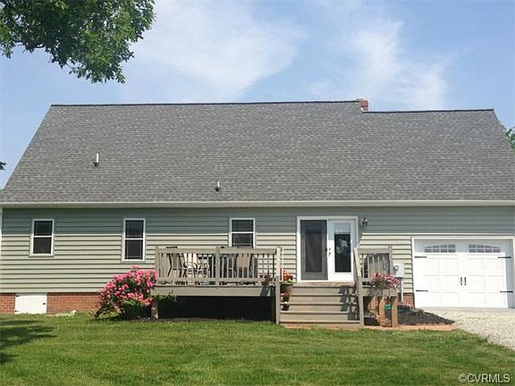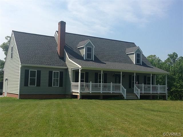 Beautiful, well maintained country cape on 4.3 acres in western Powhatan. Freshly painted inside. Open kitchen and family room with a stunning floor to ceiling gas stone firelplace and oak hardwood flooring. 2 bedrooms downstairs with an updated hall bath, featuring new vanity with granite countertop and tiled walk in shower. Master bedroom downstairs has a large walk-in closet. 2 large bedrooms upstairs wit a hall bath and loft in between. Home has newer heat pump, hot water heater, storm doors, argon gas thermal windows, and roof. Garage has electric door opener. Exterior has new premium, insulated vinyl siding and composite railings on front porch. Huge rear deck, 19x15.5 to entertain or sit, relax and enjoy the view of your4.3 acres of country living. Home has been wired for a generator. Have horses? No problem, bring them along!