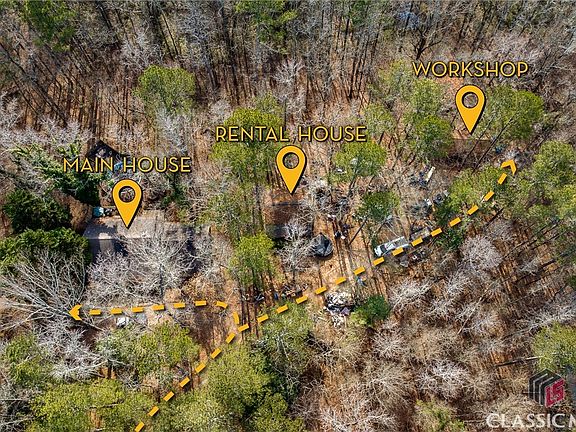 Desirable North Oconee County – TWO HOMES and a Workshop on 5 Acres!! This rare find property is a fixer-upper but offers the perfect blend of privacy, space, and versatility. Situated on 5 acres, it features two homes, a spacious workshop, an above-ground pool and a large deck, ideal for both relaxation and entertaining. The main house has an open-concept layout with vaulted ceilings and large rooms. The kitchen has stainless steel appliances and is ready for your special touch. Enjoy the sunroom for year-round comfort and a separate office space perfect for working from home. The finished basement provides additional living space and has a wood-burning stove fireplace, and built-in shelves. Double-pane windows ensure energy efficiency throughout. The second home offers 1,200 square feet of living space with 2 bedrooms and 1 bathroom, making it perfect for guests, extended family, or rental income. With plenty of room to grow, this property also features a spacious workshop, ideal for hobbies, storage, or a home business. The serene setting is surrounded by nature, providing a peaceful escape while remaining conveniently close to local amenities. This rare find is perfect for multi-generational living, rental income, or those seeking extra space to enjoy the great outdoors. Don't miss this opportunity!
