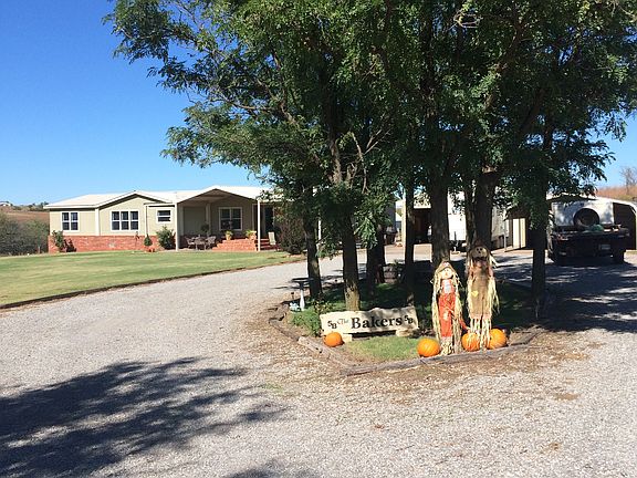 Nice country home on 2 1-2 acres. Storm shelter, barn, 2 car garage, 2 carports, children's playhouse, cattle pens, front and back porch-patio