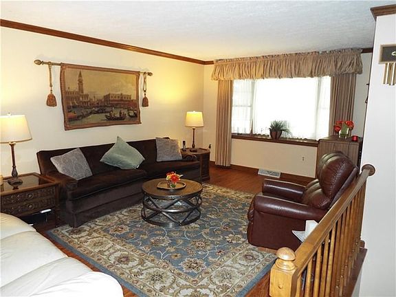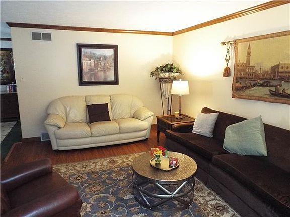 Solid brick end unit...Main living areas on one level...one step into entry. New flooring installed in living room and new carpeting in both bedrooms 6/2020. Master bedroom has convenient half bath. Skylights in main bath and kitchen. Spacious eat in kitchen. Walk out to awning covered deck through second bedroom that is now used as a den. Spacious lower level with a beautiful fireplace and sliding doors to rear yard. 2 car TANDEM garage.