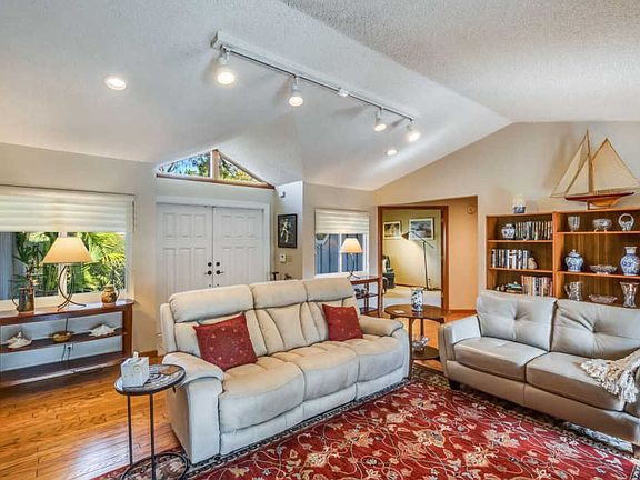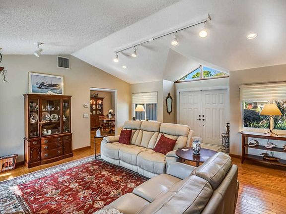 Beautiful 3/2/2 home meticulously taken care of by original owner. Large kitchen features granite counter tops with white cabinets. Updates include real wood flooring in living room and kitchen, french doors with inset blinds, new fencing and upgraded baths featuring rain shower shower heads. The screened in back patio lets you enjoy the garden like setting of the back yard. The home is protected from Hurricanes by a combination of shutters and impact windows. Bring your pickiest buyers to this immaculately maintained home.