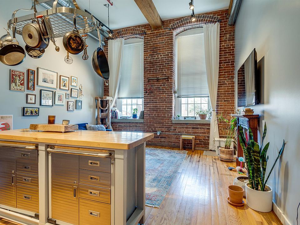 Charming loft in historic Germantown! 14ft ceilings, exposed brick & ductwork, google fiber, brand new HVAC unit. Same level as pool & fitness center. Multiple access points from parking. Convenient to Interstate, but walking distance to everything in Germantown. Amenities include 2 salt water pools, bocce ball, outdoor kitchen & so much more!