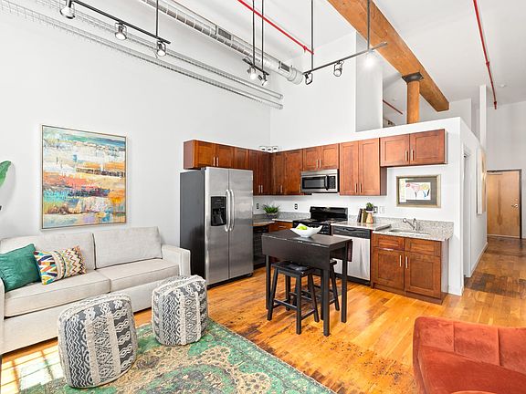 Located in Germantown, the historic Werthan Mills building is a converted factory featuring unique industrial living spaces. The gated Werthan Mills Lofts complex features beautifully landscaped courtyards, private terraces, cabanas, fitness center & yoga studios, and two community pools. Unit 245 boasts soaring ceilings, exposed brick walls, original hardwood floors, and a wine fridge. This unit is conveniently located close to both pools, the fitness center, and the entrance off Rosa L Parks Blvd (steps to the farmers market). Renter responsible for electric. No smoking in unit. Unit conveys with two on-site parking permits. Unfurnished.