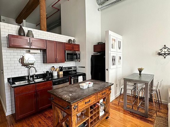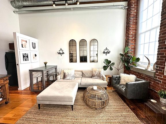 One bed / one bath unit in historic Werthan Lofts in Germantown! Unit includes original hardwood floors, brick walls, 15 ft+ wood beam ceilings and restored arched brick windows. Living area has two large windows bringing in lots of natural light. Condo includes kitchen appliances (dishwasher, microwave, fridge / freezer) and in-unit washer and dryer. One parking spot is also included in the community's private garage and secure main lot. Werthan Lofts is a gated community and offers two saltwater pools, bocce ball court, common gardens, fitness center, rooftop deck, and courtyard with grill. The community is located within walking distance of premier restaurants & bars, grocery store, farmer's market, Bicentennial Mall, entertainment and sports venues. Rent includes water, trash and complex amenities. No pets. No smoking. Showing per request.