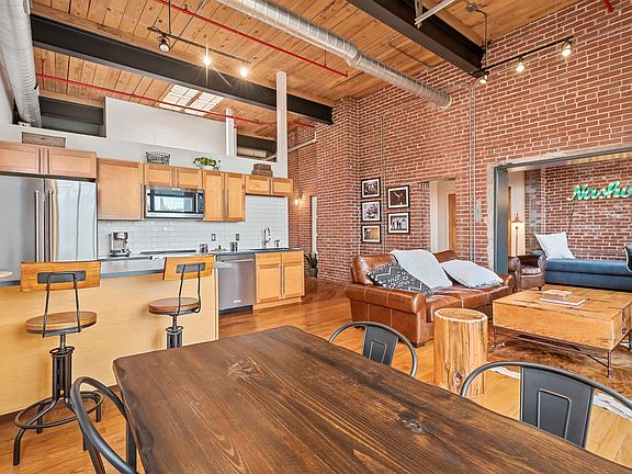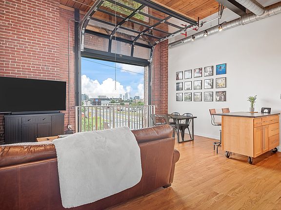 Located within highly coveted Germantown, this top-floor upscale loft boasts tons exposed brick, aged hardwoods, skylights, 9' garage door/window, and an elevator shaft converted into a Den and/or 2nd Bedroom. This loft exudes character and uniqueness. Park 3 Vehicles with quick and direct access to the Building’s private garage. 1 assigned parking space within garage + 2 unassigned spaces. Werthan offers 2 salt-water pools, built-in grilling stations, bocce ball court, well-equipped workout facility, yoga room, & dog run. Walking distance of top-rated restaurants, the Sound’s Stadium, & Downtown Nashville.