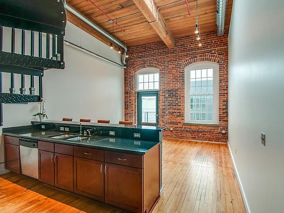 Exposed Brick, Beams & 17ft ceilings! Oversized Windows & Rare Skylight = All of the light! *TWO Reserved/Garage Parking Spaces, with elevator that takes you directly to the 4th floor! Spacious Balcony that overlooks the Pool. Unit includes ALL appliances. Vacant and move-in ready!