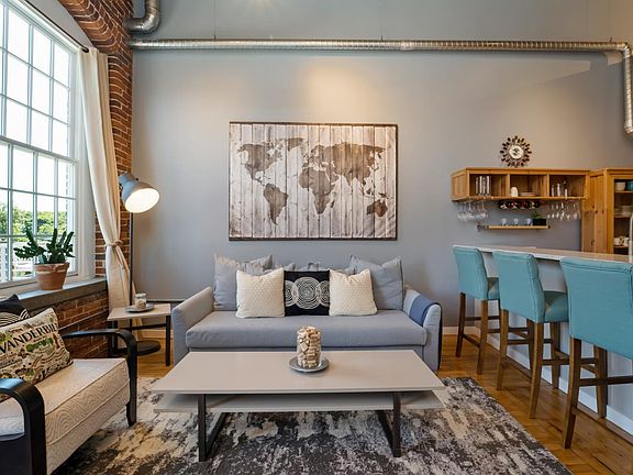 Incredible Werthan Loft w/exposed brick. Top floor Unit. Downtown and Pool views off the balcony. Werthan includes 2 pools, Bocce Ball, garage/surface parking, outdoor grills and a gym. Walkable to everything in Germantown.