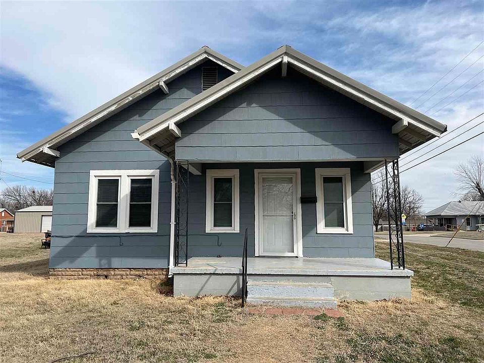 Great location!! This 2 bedroom bungalow sits on a corner lot with a detached garage and partial privacy fence. Featuring hardwood floors in both bedrooms, carpet in the living room, newer vinyl replacement windows and a metal roof.