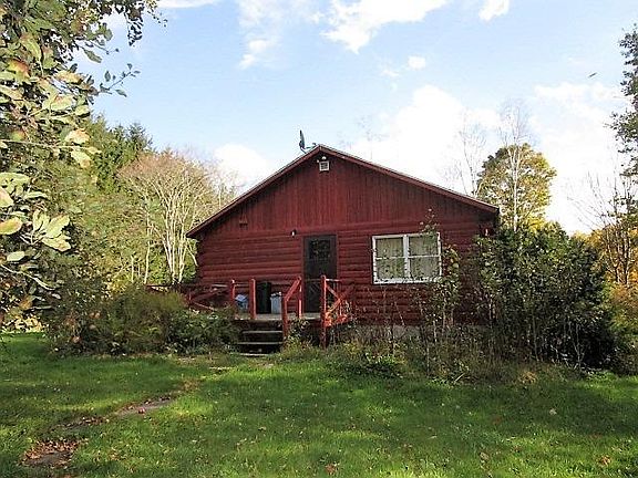Ranch style log cabin sitting on nearly two beautiful, private, county acres with year round stream. Home sits above the stream so no worries about home flooding. Very nice open floor plan to entertain. Home is very solid and has a roof that is only two years old. The basement is dry and could be finished for more livable space.... LOW TAX AREA!!