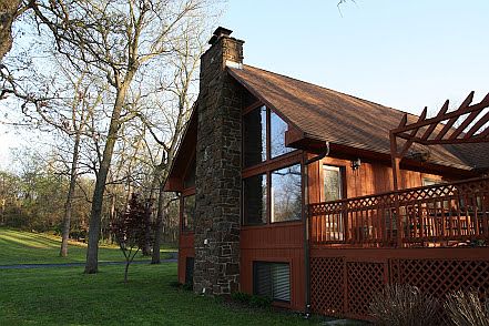 A timeless, custom-built design located in a park-like, five acre setting with plenty of mature trees. Modified A-frame construction with wall to wall windows surrounding a massive Arkansas stone fireplace. Three levels include a master suite with sitting loft, finished walkout basement, two wood burning fireplaces, a detached garage with guest suite/office, and an outbuilding with shop, two open bays and a hay loft. House and Garage have separate electric meters. Average monthly electric cost in 2017 for house ($149.46) and garage ($58.87). Call 417-429-4450 to schedule an appointment or for more info.