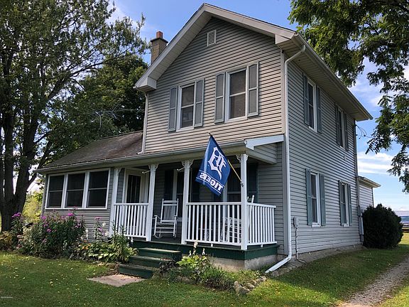 Not your normal farm house....home has a huge great room with fantastic view! The great room addition was added in 2004, cathedral ceilings, with 2 sliding doors to the spacious deck. Perfect for entertaining or family gatherings. Island with drawer storage and snack bar. Stainless appliances included. Hardwood floors throughout the main floor. Den, which could be a formal dining room, features wood/coal burning stove, wall of windows to enjoy the huge trees in the front yard, a perfect place to curl up with a book. Large office, could be a 4th bedroom. Spacious bathroom with claw foot tub and walk-in tile shower, ceramic floors. Several outbuildings, most importantly is pole building, bank barn, work shop/garage and a unique finish-able guest house with great view of the acreage