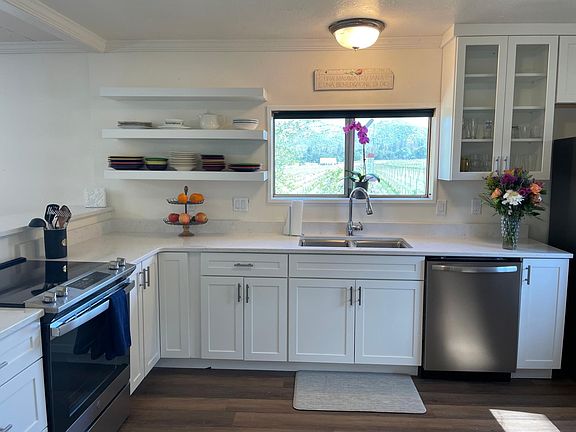 All the beauty of the Applegate Valley from the Valley View Winery estate home. Newly remodeled, with new kitchen cabinets, new quartz countertops, new flooring in the kitchen and hardwood throughout. Located at the third driveway of the Valley View Winery estate, this is the main house. (the driveways are 1000, 1140 and 1352 Upper Applegate) Views of the surrounding vineyards and mountains from every window. This serene setting is a wonderful retreat at the end of a hard day. Walk to Cantrell-Buckley Park and the Applegate River. Completely furnished four bedroom home with game room, living room, family room, dining room, laundry room and garage. Renter pays utilities. Addition fee and deposit for pets.