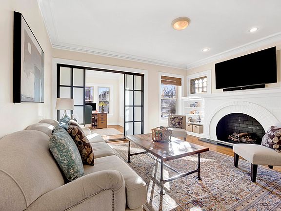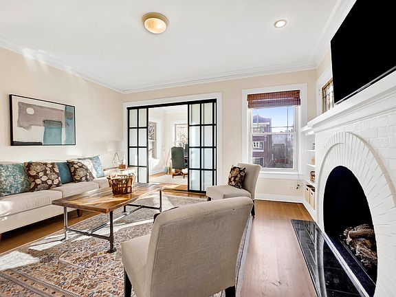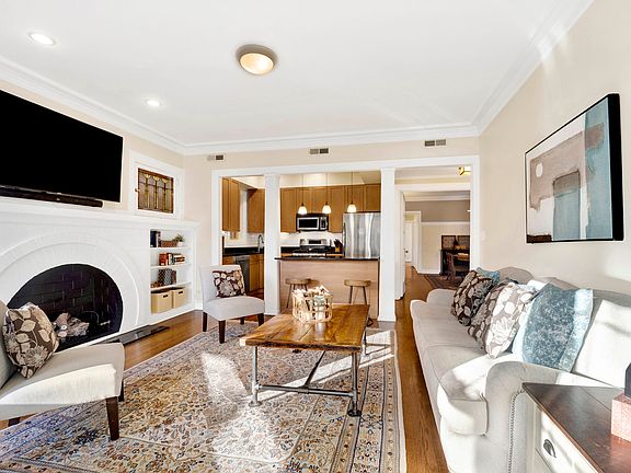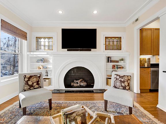 This oversized 3 bed 2 bath home seamlessly combines thoughtful updates with timeless vintage charm. Highlights include a separate dining room with elegant wainscoting, a living room featuring a fireplace, and beautiful wood floors, built-ins, and molding throughout. The updated kitchen boasts a center island, stainless steel appliances and a tile backsplash. The primary bedroom offers an ensuite bath for added privacy. A bright sunroom with incredible natural light creates a cozy retreat, while a private rear deck provides additional outdoor space to enjoy. 1 parking spot is included. Situated on a quiet, tree-lined street, this home is just steps from the lake, restaurants, shopping, the Thorndale Red Line stop, and more. Don't miss your chance to call this your home!