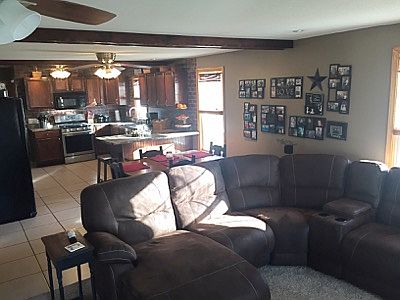 This home sets on 2 acres on the edge of town!! The pole barn has electricity, concrete floors and 2 overhead doors. The interior of the home has obviously been well maintained and updated! There are 3 bedrooms, 2 bathrooms and an office! This home also features a large utility room complete with built-in storage and seating. The kitchen and living space are open concept with exposed wood beams. There are dark wide planked laminate floors through out the bedrooms and large tile in the kitchen and dining room. It also has a dry basement with a warranted waterproofing system.