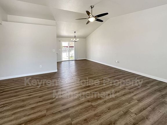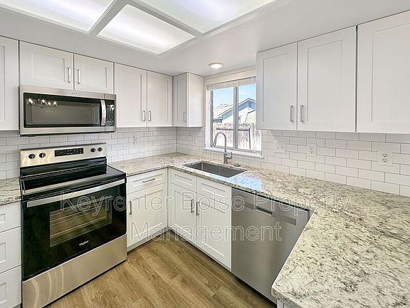This beautifully designed property is located in a peaceful and friendly cul-de-sac, ensuring the perfect blend of privacy and community. Step inside and be greeted by soaring high ceilings and all-new faux wood flooring which complement the fresh paint throughout the home. Enjoy year-round comfort with central heat and air conditioning, as well as added efficiency provided by ceiling fans in various rooms. The modern kitchen is a chef's dream, showcasing new stainless steel appliances, custom kitchen cabinets, and striking granite countertops. The cozy breakfast bar invites family gatherings and relaxed meals. Entertaining is a breeze in the spacious open-concept living and dining spaces which effortlessly flow outdoors. The master bedroom features an elegant ensuite bathroom and a generous walk-in closet providing ample storage. Each bedroom provides an inviting and comfortable retreat for relaxation. The added convenience of an in-unit washer/dryer ensures laundry days are a breeze. Step outside to discover the huge, fully fenced backyard offering an ideal setting for outdoor activities, gatherings, and relaxation. The attached 2-car garage provides secure parking and additional storage space. To top it all off, this lovely home includes a gorgeous deck/patio area perfect for alfresco dining, entertainment, or simply soaking up the Idaho sun. Don't miss this exceptional opportunity to live in an immaculate home, offering the ultimate in style, comfort, and convenience. Connect with us today to make it your own! *The Basics: Landscaping: Renter arranges and pays for all landscape. Lease Term: 12 month initial lease term Utilities Included with Rent: NONE, Tenant responsible for all utilities Pets Policy: Sorry, No Pets *IMPORTANT THINGS YOU SHOULD KNOW: This is a No Smoking rental property Application processing time is 2-3 business days. Please review Keyrenter's Application Criteria prior to applying. All household members over the age of 18 must complete an application. No sublease/Airbnb etc. Other restrictions may apply per lease contract. Security Deposit: Equal to one month rent + $200 All Keyrenter Boise residents are enrolled in the Resident Benefits Package (RBP) for $50/month which includes renters insurance, HVAC air filter delivery (for applicable properties), credit building to help boost your credit score with timely rent payments, $1M Identity Protection, move-in concierge service making utility connection and home service setup a breeze during your move-in, our best-in-class resident rewards program, home buying assistance, Pest Share on-demand pest control service, and much more! More details upon application. Other terms and conditions may apply. All information including advertised rent and other charges are deemed reliable but not guaranteed and are subject to change. Amenities: newly remodeled, stainless steel appliances, walk-in closet, washer/dryer, attached 2-car garage, ceiling fans, new paint, new flooring, breakfast bar, central heat & air conditioning, granite countertops, high ceilings, huge backyard, located in cul-de-sac, master bedroom ensuite, faux wood floors, deck/patio, fully fenced backyard, new kitchen appliances, custom kitchen cabinets
