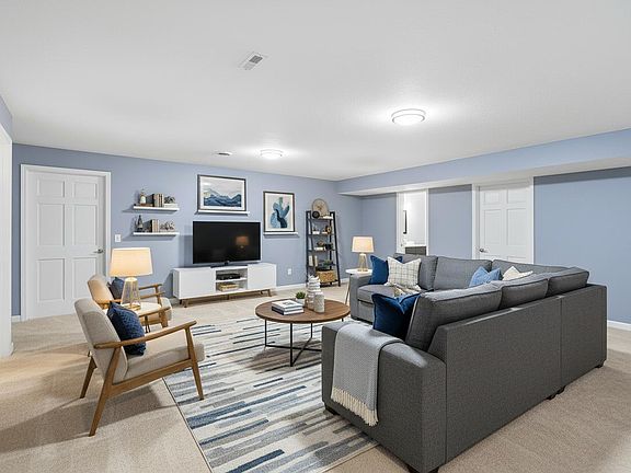 Finished basementSound-insulated flex roomRecreation roomInviting curb appealDedicated media roomPrimary suiteVaulted ceilings
