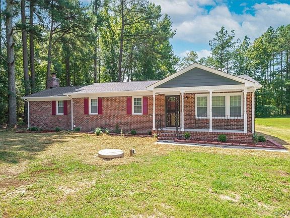 This Dinwiddie ranch sits on is 1.00 acres and it's loaded with comfort. Private spacious drive way. Minutes from I85, Dinwiddie Airport and complete tranquility! This gorgeous home features stunning floor plan design and detail. Walk into renovated spaces with two decks accessed privately. Separate dining area. Beautiful hardwoods and luxury vinyl plank throughout. Mid century and art deco and built-in shelves. Exquisitely remodeled spacious kitchen features tile backsplash, stone countertops & appliances are included. Four bright and very spacious bedrooms, including the primary with full bathroom. Two remodeled full bathrooms and one half bathroom. Huge attic and detached shed for storage. New roof, new HVAC. This is a dream home!