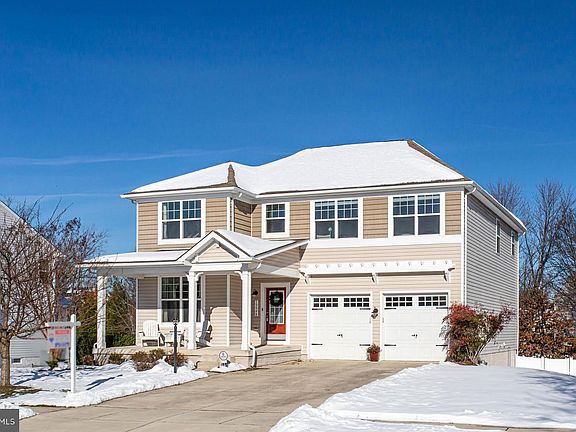 Beautiful 5 bed 3.5 bath colonial with a two-car garage, an oversized covered front porch with decorative columns, and a maintenance-free exterior. The large level backyard gives lots of room for safe entertainment and comes equipped with a fire pit area and a 6-foot vinyl fence for privacy. Enter through the main level two-story foyer with hardwood floors throughout. Office/study area with 9' ceilings. Formal dining room and a large open family room with a gas fireplace, a heatilator, a decorative wood plank mantle and recessed lighting. Large remodeled island kitchen with upgraded countertops, tile backsplash, stainless steel appliances and ceramic tile throughout the kitchen and the breakfast nook area. Decorative half bath with hardwood floors and a designer sink. Laundry room with a full size frontload washer & dryer, shelving for extra storage and easy access to the garage. Upper level with a second open study or office area. Four bedrooms and two full baths, including a master suite. Large master bedroom with a custom ceiling fan, one large walk-in closet PLUS an additional smaller closet. Master bath with a raised double sink vanity, an oversized soaking tub, a separate shower, ceramic tile floor, ceramic tile surrounds and built-in closet organizers for tons of extra storage. Entertain in the fully finished walkout basement recreation room equipped with recessed lights, wood look tile floors, a fifth bedroom, a third full bath, a storage area, and a sliding glass door to the brick paver patio. This home remains monitored with both a 24 hour security system and a ring doorbell. This home was renovated in 2021 and is simply a must see.