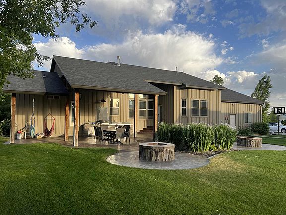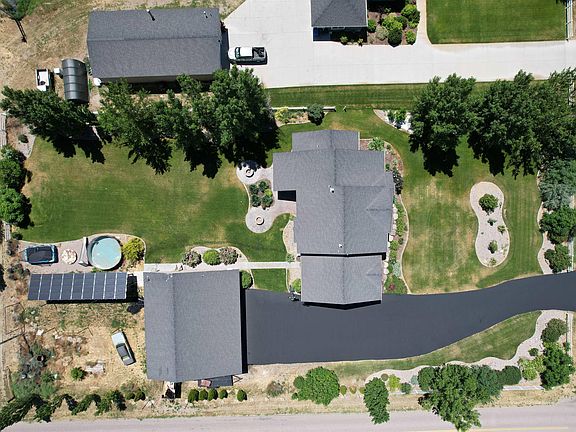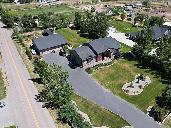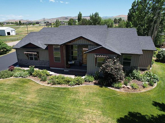 Don't miss this unique property. This ranch home is chuck full of value added amenities including: 1) Full solar system with battery backup which handles house emergency load (Est. value $80,000) electric bill averages $5/month. 2) Hydronic heating with geothermal ground water heat source in the shop and available in the house. 3) Whole-house attic fan to cool off the home in minutes. 4) 9 car garage - Attached 3 car garage, additional Insulated 6 car shop with inside and outside RV Storage. The floor is heated with a natural hot ground water source. Includes mini-split air conditioning, with half-bath. 5) Oversized front door, exterior barnwood trim, gorgeous eat-in kitchen, Large theatre room, view-through fireplace, Jetted-soaker tub in Master, significant storage, vaulted ceilings, etc. 6) A true backyard haven. Over $100,000 in exterior landscaping and improvements. Built in external BBQ Grill and outdoor kitchen, covered sitting area with relaxing swings and two fire pits (one fire pit is plumbed for gas) Asphalt paved driveway.