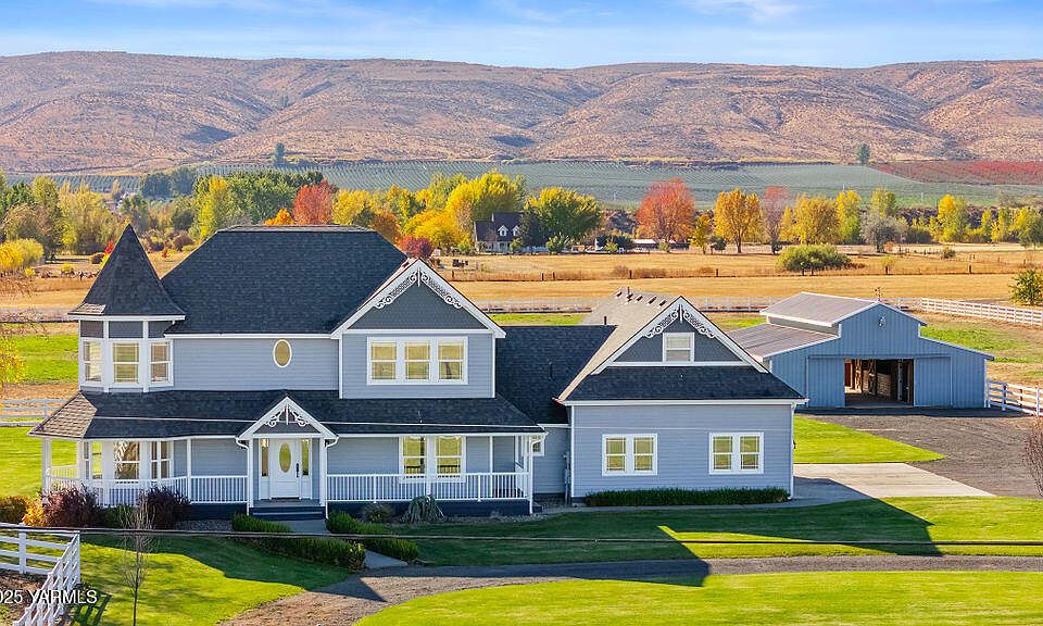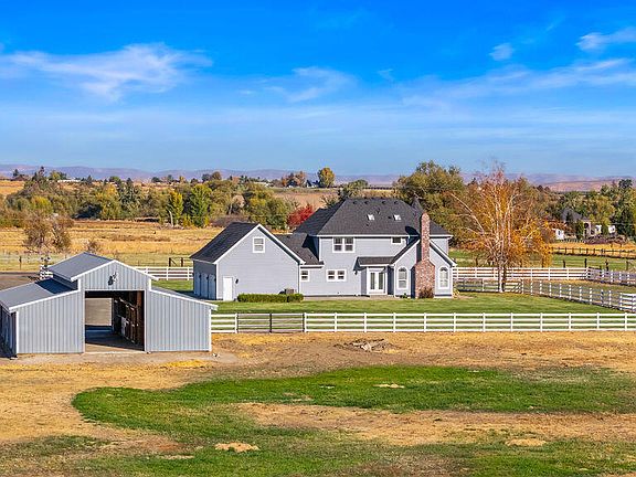 This beautifully updated county property in West Valley spans 5 fully fenced acres, perfect for livestock, farming, homesteading or horse enthusiasts. The 2,829 sq ft home, built in 1995 but fully renovated, features 4 bedrooms, 4 bathrooms, and a stunning custom hickory wood flooring & staircase. The kitchen offers granite countertops, double ovens, oversized fridge/freezer and custom cabinetry. Bathrooms include marble floors and quartz countertops, all gorgeously updated. The home also boasts a dedicated office/playroom/den, and a spacious master suite with a unique windowed turret design.A separate staircase leads to a private suite with its own living room, bedroom, and full bathroom--perfect for guests or mother-in-law suite. The property includes a 4-stall barn, pastures, paddocks, and a sprinkler system throughout. The laundry room is equipped for double washers and dryers, and the 3-car attached garage provides ample storage. With its serene country setting and modern updates, this property is an ideal blend of luxury and rural living. Come tour today!