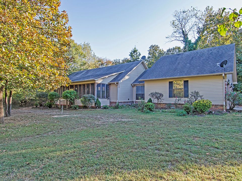 Looking for Privacy? Beautiful gated home on 3.6 acres w/ a pond, sunroom, & screened porch. Large LR w/ vaulted ceilings and fireplace. Eat-in kitchen w/ breakfast island, wood cabinets, hardwood floors, cooktop, & built in oven. Oversized laundry room w/ extra cabinets & space for freezer. Enjoy the Jacuzzi tub, walk-in shower, double vanity, & walk-in closet in the master bathroom. House sits off the street w/ private drive. 2 car garage & 2 car covered parking. Storage building. Fenced in chicken coop!