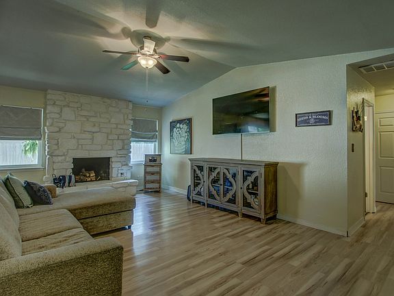 Great find! Clean Cute updated 3 bedrooms with 2 full baths ready to move in! Fresh paint, new appliances, newer hot water heater, granite and solid floors throughout. Gas logs for warm cozy fires, A covered patio for evenings outside and a fire pit for smores. Huge yard on a corner lot with a double side gate to store your boat in the back yard. Spacious kitchen open to the dining room and living room and you could add an island Location is great as you have easy access to get around town & to highways