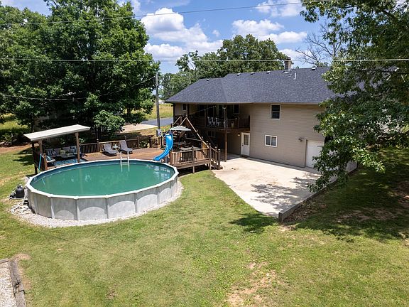 Come see the Ozarks from the front porch of this custom built home! The home is inviting the moment you open the front door. Spacious open floor plan with hard wood floors, custom cabinets, island, and dining room with a bay window overlooking the back yard. The living room has a large window to enjoy the view all year around. The master bedroom and bath are located on the main level with beautiful tile floor and shower, and HIS and HER closets! Laundry room and 2 more bedrooms on the main level with a hall bathroom. Walk-out basement offers another bedroom and bath with large family room and office nook. Off of the family room are a large storage room and John Deere room with garage door. Calling all children young and old! The back yard is area is a great addition to this house a swimming pool with deck, a deck off of main level looking over the pool area that is big enough to entertain but cozy enough to read a book. Every kids dream a custom Tree House with electric and heat! 3 car 30x36 shop the yard also has a pergola with concrete flooring that also has a beautiful view of the Ozarks Mountains. This one owner home has a lot to offer!