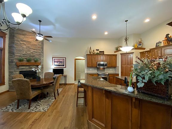 Check out this beautiful, well-maintained home located in Sierra Hills Subdivision with NO SPECIALS! A quiet neighborhood with amenities that include a swimming pool, playground, clubhouse, and golf course with easy access to shopping and dining. Upon entry, you’ll discover a spacious living room with abundant light, 12-foot ceilings, large windows with custom trim, hardwood floors and granite throughout. The large kitchen offers an island, stainless steel appliances, ample cabinets with over and under lighting, and a walk-in pantry. Off the kitchen, is a large hearth room with a stunning stone fireplace. The home has a split floor plan with 3 of the 4 bedrooms on the main level along with 2.5 bathrooms. The primary suite boasts a two-way fireplace, oversized bathroom with a double sink vanity, separate bathtub and shower, walk-in closet, and access to the deck. Stroll down to the walk-out basement that hosts a large entertainment area with fireplace, spacious 15-foot wet bar, 4th bedroom, and a full bathroom. There is plenty of storage space plus potential for a 5th bedroom and additional bathroom. The covered deck and patio provide a relaxing place to enjoy and plenty of space for outdoor activities. Yard comes beautifully landscaped with a sprinkler system and irrigation well. And did we mention that there are NO specials!? Schedule a showing today!