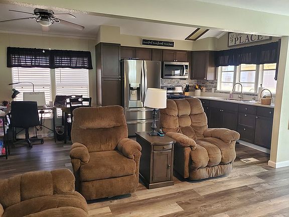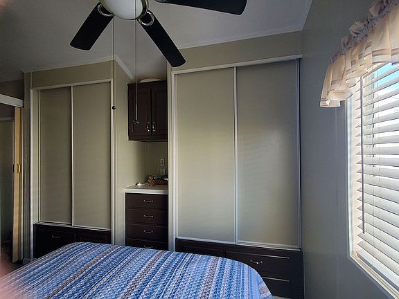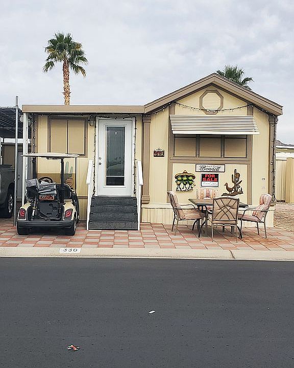 Fully remodeled park model in CalAm 55+ active adult park Sundance Yuma, Az 735 Sq. Foot Walking distance to pool, mail box and clubhouse Lot paid until Nov 2026 Fully furnished to include 70" and 40" TV turn-key Kitchen: New SS appliances New custom cabinets with lots of storage New Quartz solid surface counter tops New glass backsplash 2 pantries lots of room All dishes are included Bathroom: New walk-in shower New custom cabinets Bathroom: New walk-in shower New custom cabinets All towels and washcloths included Master bedroom: king size bed 2 end tables Shelving for storage Some bedding included Second bedroom: Queen size bed with storage underneath His and hers closets with built ins 11 drawers with 2 upper cabinets 8x10' shed with standard washer and dryer with electricity Also shelving for more storage. New: Soft water system RO system Hot water tank Flooring throughout Blinds Window exterior sunshades Roof with 5 year warranty PET FRIENDLY PARK WITH 2 DOG PARKS Brick driveway and front patio. Plenty of room to entertain.