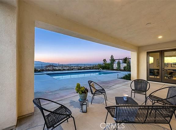 Experience breathtaking views every evening as you witness the sunset and enjoy this backyard and gorgeous pool. Stunning single story Spanish style pool home in the Citrus Heights community has four bedrooms and two and a half baths. Tile floor throughout the property, countless upgrades that were made with the builder and this home is practically brand new! As you enter you notice the wide entry and the grandness of the ceiling height. Neutral tones, and modern decor glide you into the great room where you witness the enormous marble island and large kitchen area. It features stainless appliances including a range with convection oven, 6 burner stove, stainless hood, a secondary convection oven, and separate microwave. Stainless sink in the island and dishwasher. Dark cabinets with quartz countertops with plenty of storage for all your kitchen gadgets. Under mount lighting is on both sides of the kitchen and the eat-in area extends with the dark cabinets and two workstations with more light from the double door entry to the backyard. The butler pantry extends from the kitchen and shares the same elegant glass backsplash and is across from the full walk in pantry. The kitchen is open to the living room, which features the gas fireplace and the modern retractable doors to the "California room" patio and the peaceful pool retreat. The huge sliding doors feature electronic window treatments with remote features. Guests may use the convenient half bath which is down the hall from the living room and has a Kohler stand alone sink. The back hall to the three car garage has a nice drop zone and more matching storage with a coat closet nearby. Through the butler pantry you can access the formal dining area, and has great light with multiple windows with plantation shutters. As you go down the main hall, towards the back of the home is the master retreat with the master en suite. Here you feel the solitude with subtle tones of green, an upgraded large shower with rain shower privacy glass, a separate large soaker tub and dual master sinks & one large mirror make this area spa-like. Also, there are two walk-in closets with more cabinetry in between. The master accesses the pool by way of double doors and is very private. Down the hall there is one huge office/bonus room with glass double doors and built-in shelving. Also, one upgraded guest bath, the laundry room and two more bedrooms. Garage features two car chargers, built-in overhead storage with tandem.