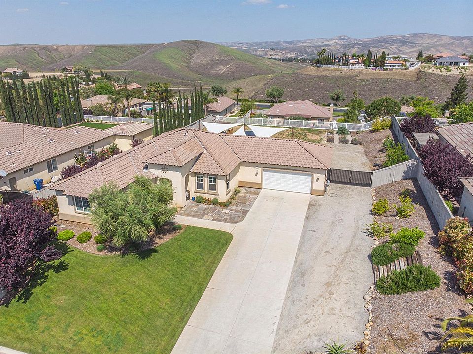 Views Views View!! Home features unique views of the rolling hills of the Lake Ming area of Bakersfield. Front to back split-wing home boasts open floor plan with polished concrete floors for that modern feel, 3 bedrooms, 2 bathrooms, office/formal dinning area, and office nook. Kitchen over looks living area for the ultimate entertaining atmosphere. Hurry with offer and you can pick the color of your choice for cabinetry, being completed in the coming week by professional! Kitchen leads to oversized level backyard, with the opportunity to create your own paradise and enjoy the view daily! Large lot features enormous driveway with plentiful parking and RV area. Community is gated, treelined streets lead you home, and a community park is very close!