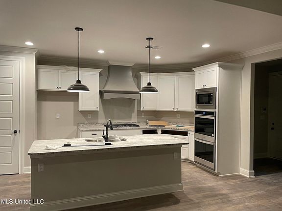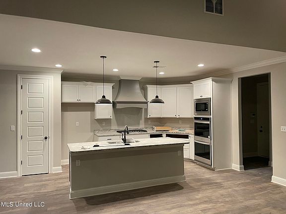 This home is located in Desoto County but has a Byhalia address. Builder will pay $10,000 towards buyer's closing costs or points to buy down the interest rate. Located on a gorgeous 1.53 acre lot in Lewisburg school district you will find this beautiful open floorplan including 8 foot double door entry, custom white kitchen cabinets with gray vent a hood, grey center island & granite countertops with overhang for bar stools, & stainless steel appliances which include a double oven, built in microwave, and gas cooktop. Two story great room has a beautiful stone fireplace with gas logs & large windows letting in plenty of natural light. LVT flooring in entry, formal dining room, great room, kitchen, hallways, master bedroom & additional bedroom downstairs (NO CARPET DOWNSTAIRS). Built in locker off of the garage entry & large laundry room with tile flooring and cabinets above the washer & dryer area. Master bedroom is very spacious & has a fabulous master bath with walk through shower & dual shower heads & stand alone tub in front. Large master vanity with two sinks & huge walk in master closet. Additional bedroom & full bath on the opposite side of the home from the Master bedroom. There is a covered back porch overlooking a gorgeous large back yard. Upstairs includes two nice sized bedrooms with walk in closets, a large bathroom, and a large bonus room with closet that can be a 5th bedroom and off of the bonus room is an office area. An added feature is 8 foot interior doors downstairs! This home will be ready to close by the end of September and is nearing completion.