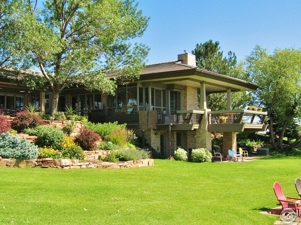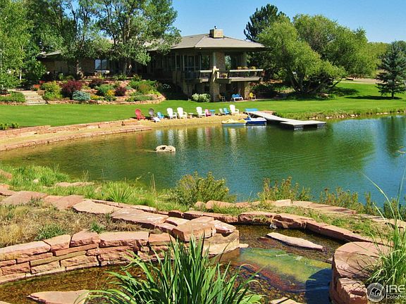 Architects beautifully designed custom ranch home on over 37 acres with stunning view of the entire front range; Longs to Pikes Peak! 5 bdrm, 5 bath, decks & patios to behold the breathtaking views across your private lake/pond with water falls. 2nd kitchen in walk-out basement with giant game/rec rm; large eat-in country kitchen has ctr island; 2 f/places, owners suite as h/h closets & baths & mountain views; geothermal & solar; 3,200+ sq foot heated barn; 21 raised garden beds. One of a Kind!