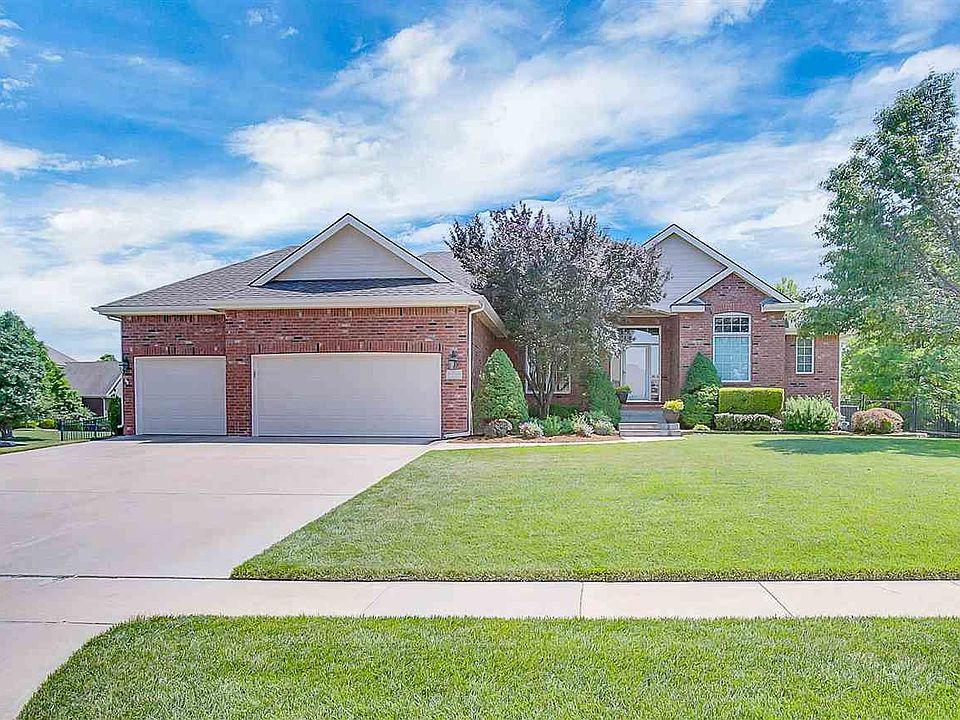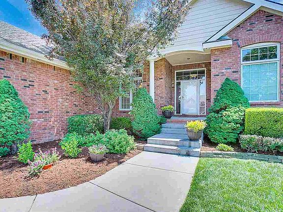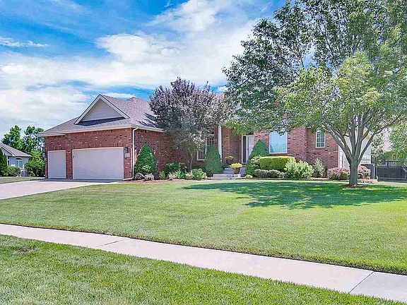 Nestled in the heart of Rocky Creek, this well-maintained one story boasts tremendous features all around. The exceptional corner lot has been tastefully landscaped framing wonderful curb appeal to enjoy day in and day out! With 5 bedrooms, 4 full baths, and over 4,000 square feet, there is plenty of room for family and friends. The main floor is spacious offering a delightful formal living and dining space, both drenched in natural lighting thanks to the large windows throughout. A hearth space opens to the kitchen and will certainly be the hub of the home. The hearth area offers plenty of room for gathering and everyday living, gas fireplace, and door to covered deck. Nearby the large kitchen offers wonderful cabinet and counter space, eating bar, granite counters, granite island, and tasteful tile finishes. Hardwood flooring carry through the kitchen and hearth rooms. Main floor laundry will be an added bonus! Two well-proportioned guest bedrooms are positioned on the opposite side of the home from the master suite. A guest bath is conveniently located for easy access to the guest bedrooms. The main floor master suite is a real retreat! Very spacious in size with door to deck and also includes an ensuite bath with walk-in closet, two sinks, separate tub, and walk-in tile shower. The lower level is more than expansive with all the room needed for cozy furniture, game table, and more! Included in the lower level is a well-positioned wet bar which is great for entertaining and the walk-out design allows for easy access to the backyard. Large windows create a light and bright feel and the gas fireplace is perfect for those cooler days! Two bedrooms in the lower level each have access to their own full bath. Both lower level bedrooms are exceptional in size with great closet space. Storage is available in the lower-level with built-in shelving. The outdoor areas are a thing of beauty! The fenced yard offers wonderful room to run and play, a stone patio creates the perfect place for morning coffee, and the landscaping includes just the right shade and privacy. Fresh paint on the exterior and most of interior make this a move-in ready opportunity! Rocky Creek includes great walking paths, stocked pond, community pool, and playground. You can't go wrong with the Andover Schools, and the best of East Wichita is within a short drive. Specials are paid off! Make sure you take time to see this one soon!