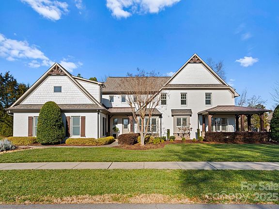 Meticulously maintained custom home in highly sought after the Woodlands of Davidson. This home has it all. Relax on the rocking chair front porch overlooking the neighborhood orchard and butterfly meadow. Then step inside the chef's kitchen with quartz countertops, gas burners, double oven, and oversized island. Entertain in the dining room with dry bar, the great room with fireplace, or the four seasons room with fans and heaters ensuring a perfect temperature all year round. After a long day of work in the main floor office, retreat to the primary suite with oversized tub, rainhead shower, and separate his/her closets. Upstairs is a large bonus with half bath, two bedrooms with a Jack and Jill full bath, and a third ensuite bedroom. A second living area off the kitchen stairs is perfect for guests and includes a bed/exercise room plus a flex space with wet bar. Outside, the pool with hot tub, waterfall, and travertine deck should not be missed. Run, don't walk, to see this home.
