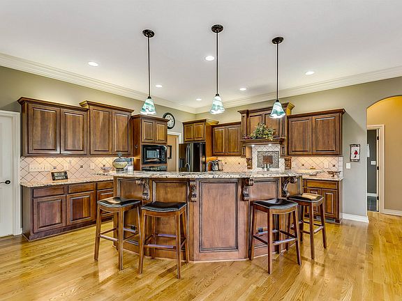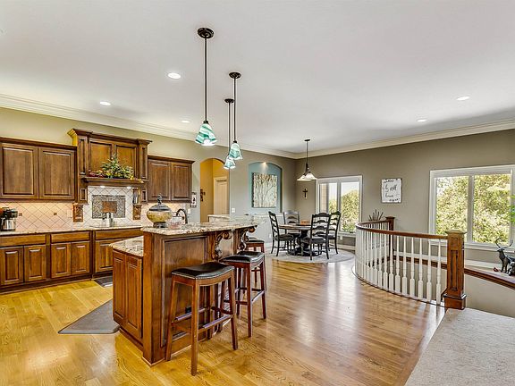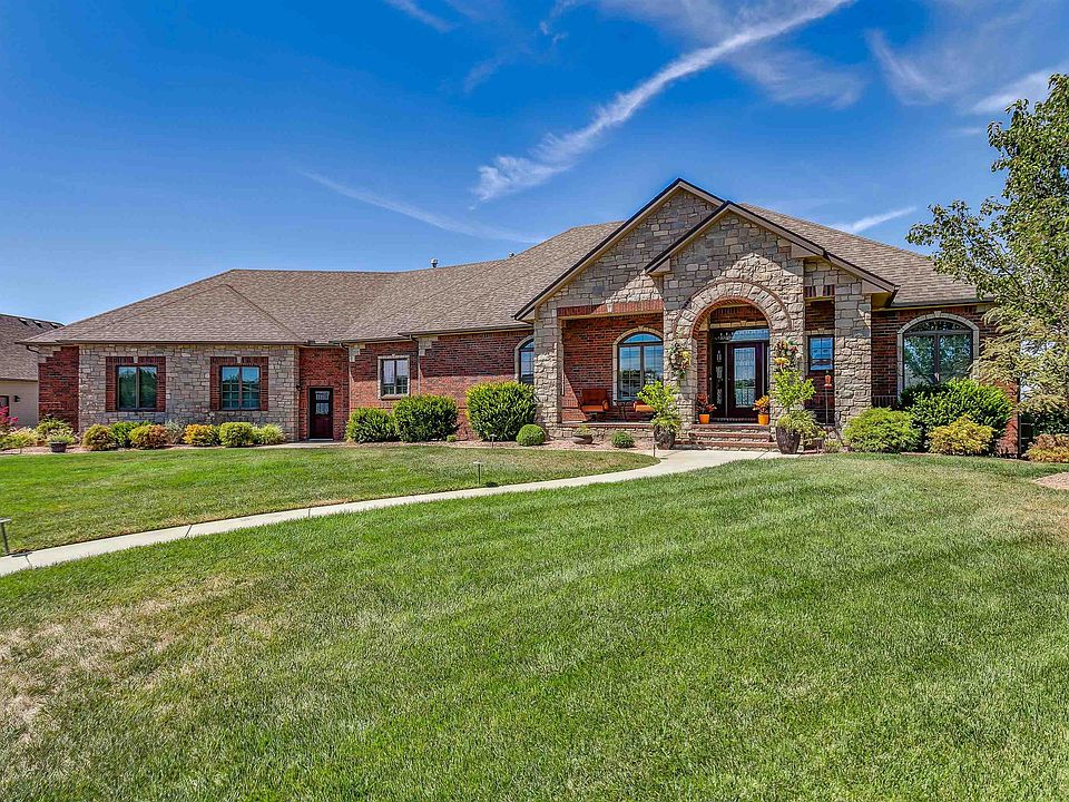 Welcome to this stunning home situated on 2 lots in Equestrian Estates. This beautiful and inviting ranch home features a great open floor plan for easy entertaining. The split bedroom plan has 2 bedrooms upstairs with an added bonus room that can be used for an office, craft room or whatever your heart desires. The gourmet kitchen will be the heart of your entertainment area featuring a large center island/eating bar, a walk-in pantry, over and under counter lighting, tons of pull out/soft close cabinets, an induction cook top and hand blown pendant light fixtures. Adjacent to the kitchen, a back hallway offers optimal function with a door to the 3+ car attached garage, drop zone, beautiful shelving, 2 coat closets, the walk in pantry and the separate laundry room with a sink. Enjoy dinner parties in the formal dining room with ample space for a large dining table. Directly off of the living room is a fully enclosed, heated and cooled sunroom with a 2 way gas fireplace overlooking the koi pond, the perfect addition to this already beautiful and functional home. Retreat to a spacious master suite with private ensuite bathroom offering large windows overlooking the koi pond, a brand new double vanity, an oversized tile shower, and a fabulous closet. The light and bright viewout / walkout fully finished basement features a rec room with stone fireplace, area for gaming table, door to the covered patio for access to the hot tub, impressive wet bar area with room for a full refrigerator, 2 additional bedrooms, a full bathroom, a safe room, and a huge storage room. The amazing separate oversized 2+ car garage/shop features tall ceilings with pull-down access for storage above, a wall to wall custom workbench & shelving, a full bathroom, separate electric meter and 200 amp sub panel as well as a heater. The floor is an epoxy coating providing a durable easy to clean surface. All the garage doors are equipped with quiet doors that provide an extra element of security with a secondary locking feature. There is ample open parking space between the house and secondary garage. The entire lawn is set up on an irrigation system that is run off of a well. Some of the other upgraded features and improvements that this home boasts include plantation shutters and cordless shades, new double vanity/faucets in the master bathroom, new water softener system, extensive landscape, lighting and additional fencing, replacement of the walkway and backyard patio with pavers and the fully enclosed sunroom with heat and air giving you an additional 295 sq ft of living space year around. This charmer offers easy access to highways, shopping, dining, and schools. Don't miss it!